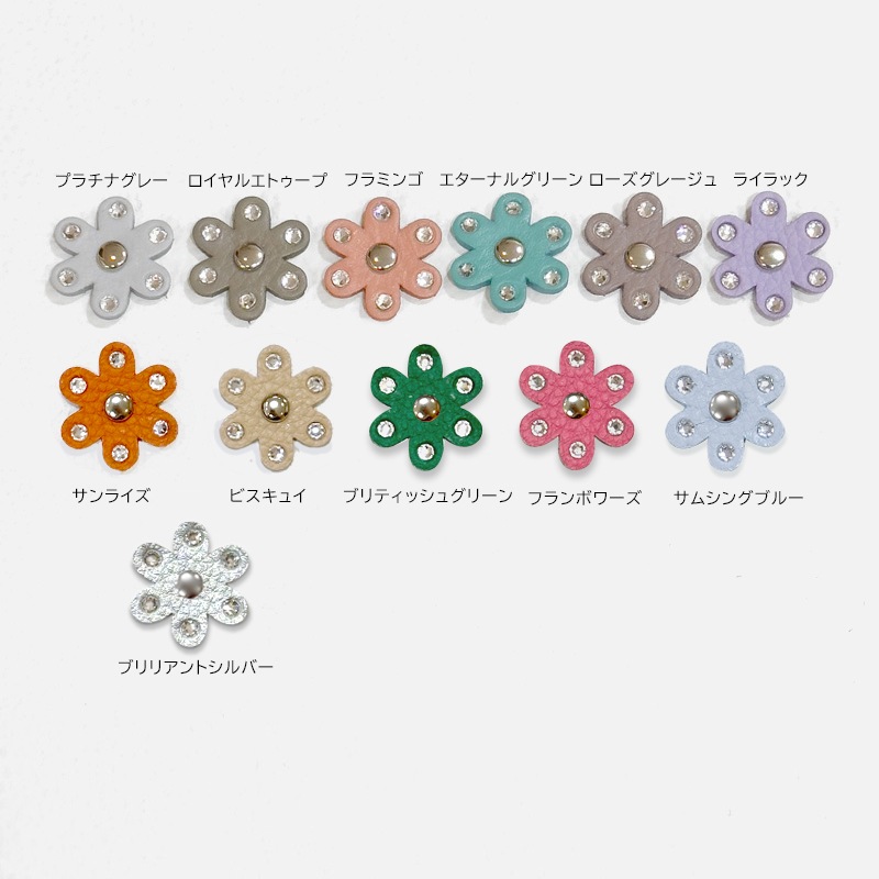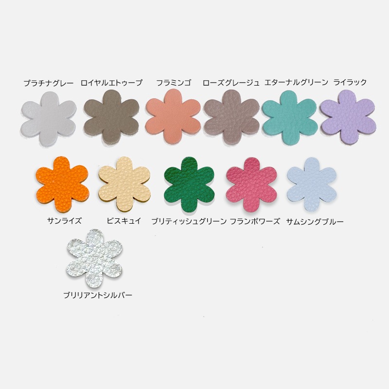 5枚目写真は、上段左からプラチナグレー・ロイヤルエトゥープ・フラミンゴ・ローズグレージュ・エターナルグリーン・ライラック