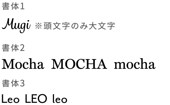 - 刻印(アルファベット7文字まで)※書体2と書体3は表示の3パターンの指定が可能です。必須